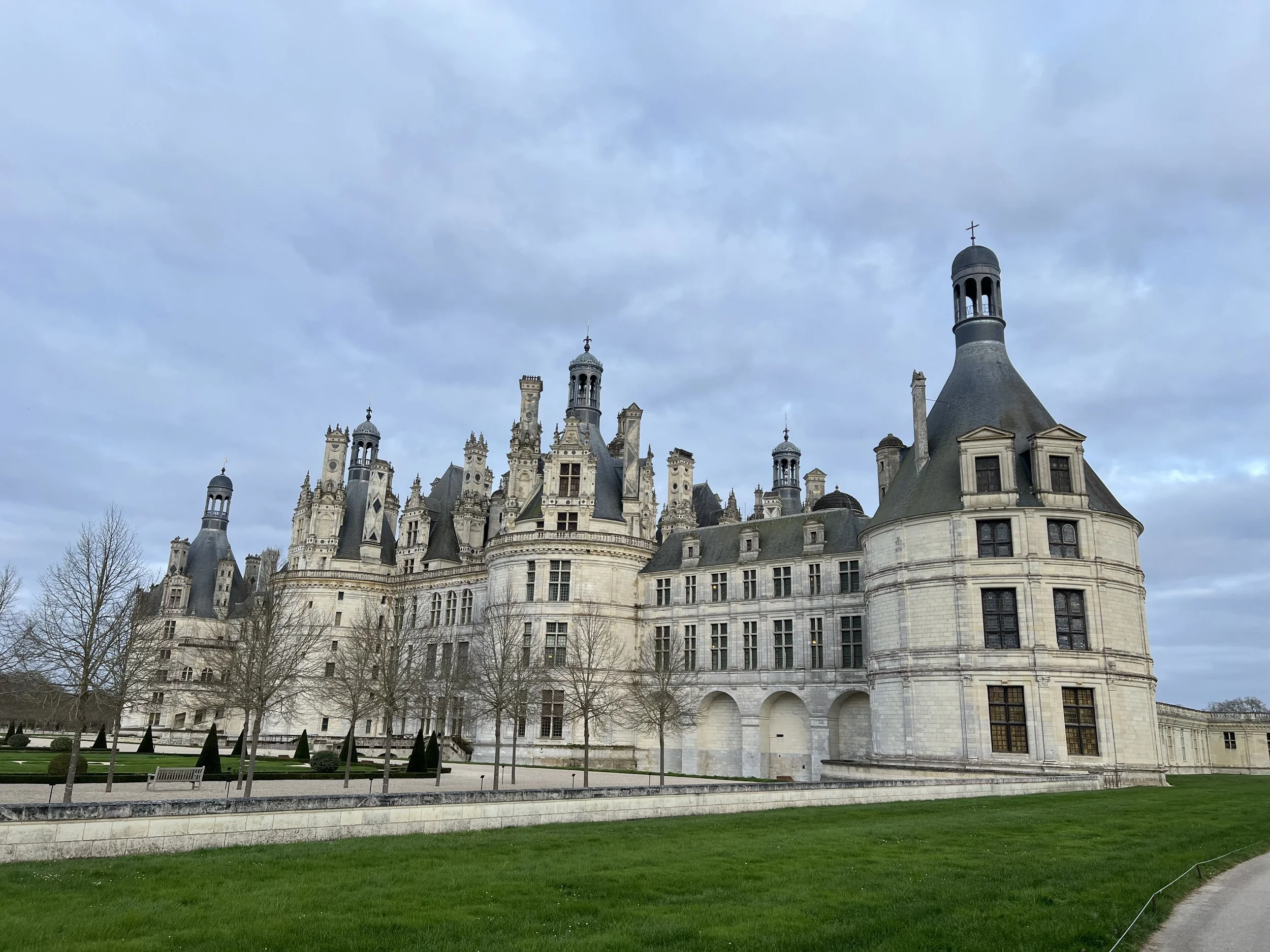 Not even the pictures I’ve seen prepared me for the fairytale structure in the distance. While all the chateaux I have visited to this point have been jaw dropping, at Chateau de Chambord I truly had to take a moment. I was delightfully overwhelmed with the sheer size of the castle, the landscape as far as my eyes could see, and the tranquility of the spaces with gardens, manicured walking paths, and towers reaching straight up into the sky.