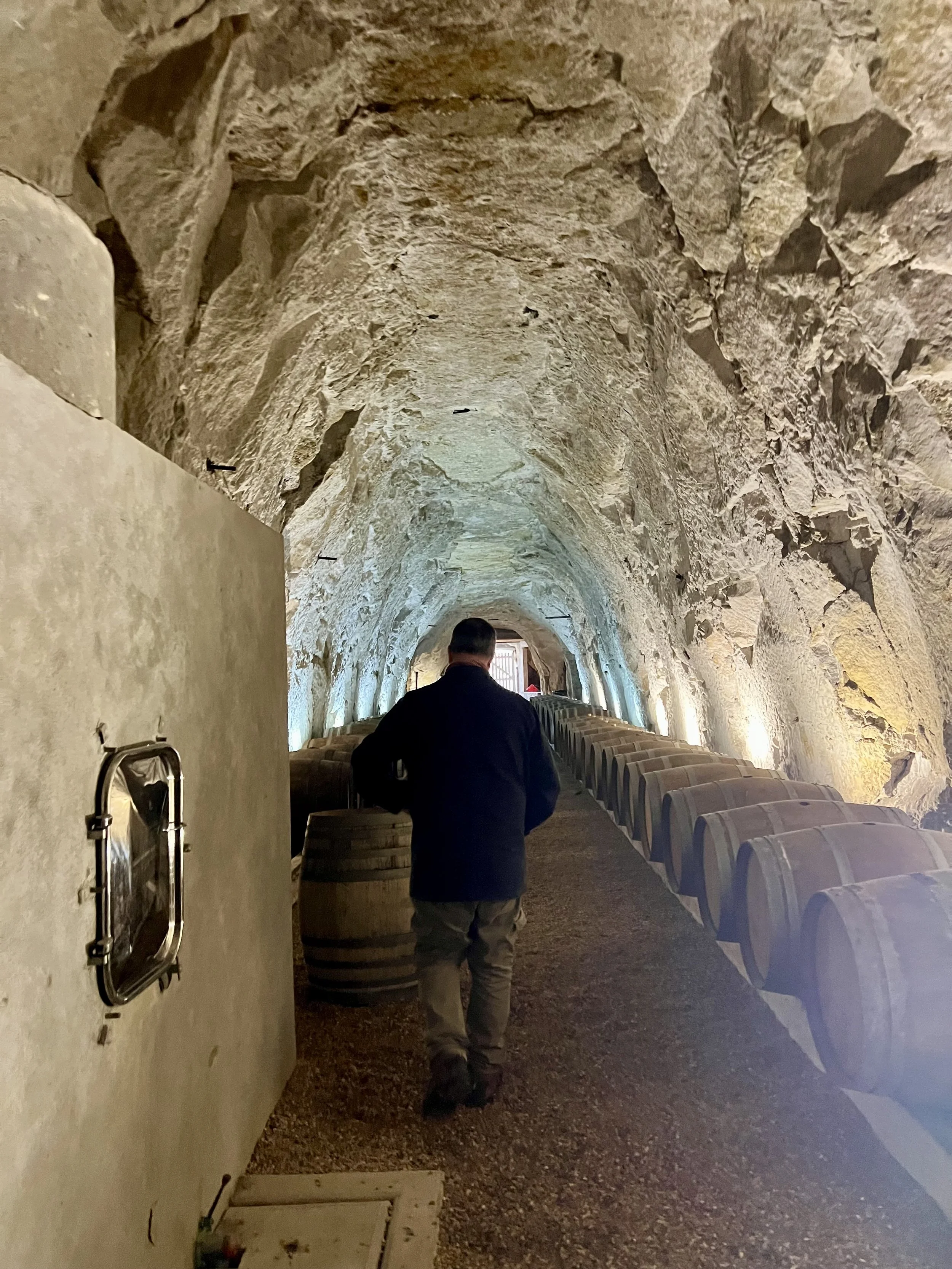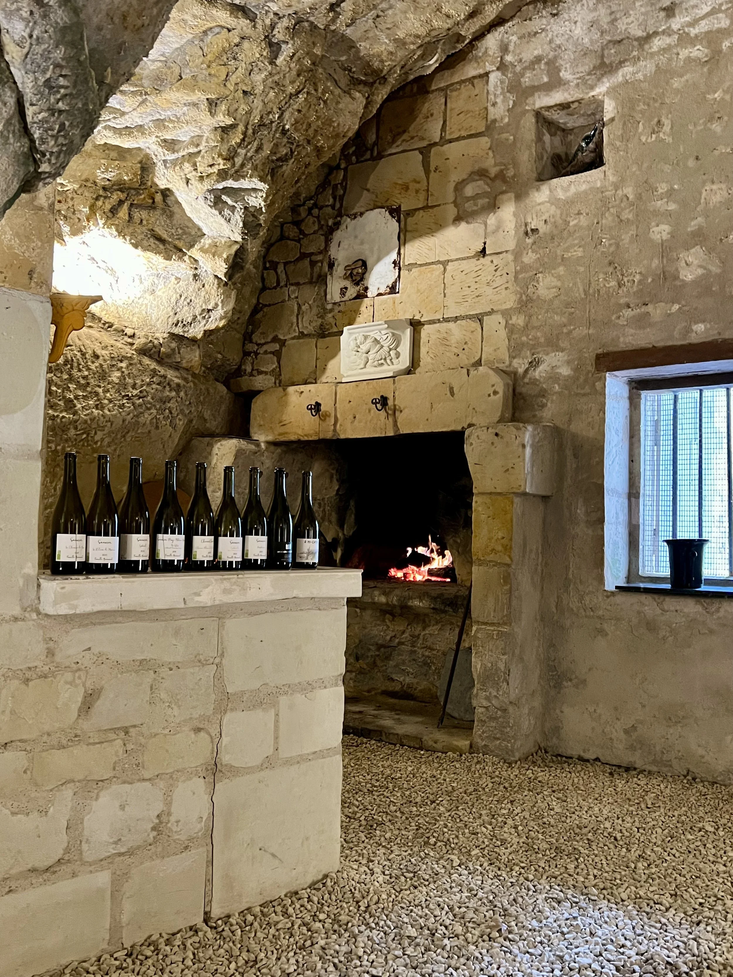We booked a date with Domaine Beaumont that was nestled between forecasted rainstorms, which proved challenging but not impossible. Sarah-Jane and Gérald welcomed us warmly to their beautiful vineyards, pristine cathedral cave, and delightful home where each room was warmed by a roaring fireplace and we were chaperoned by a curious cat.
