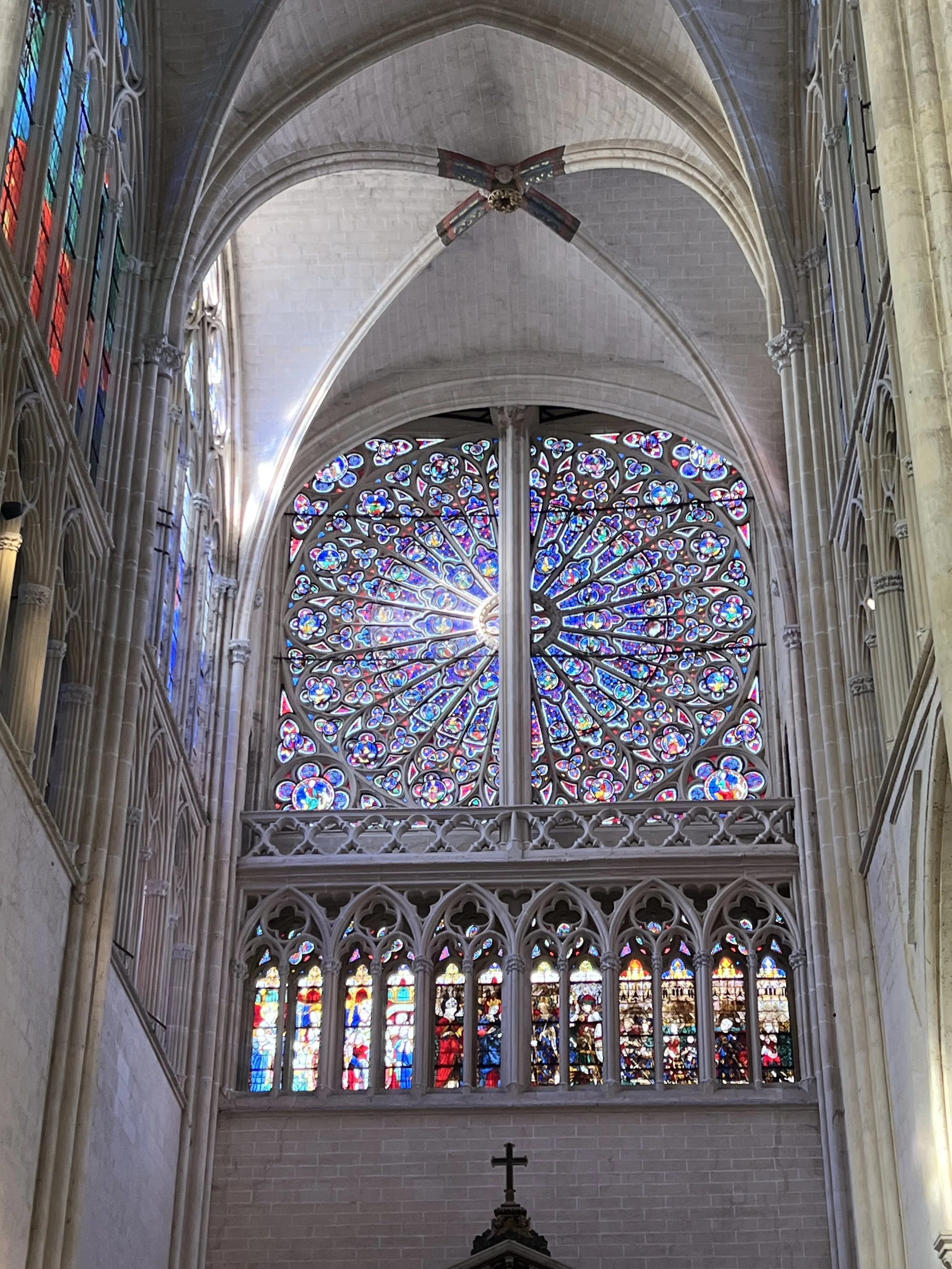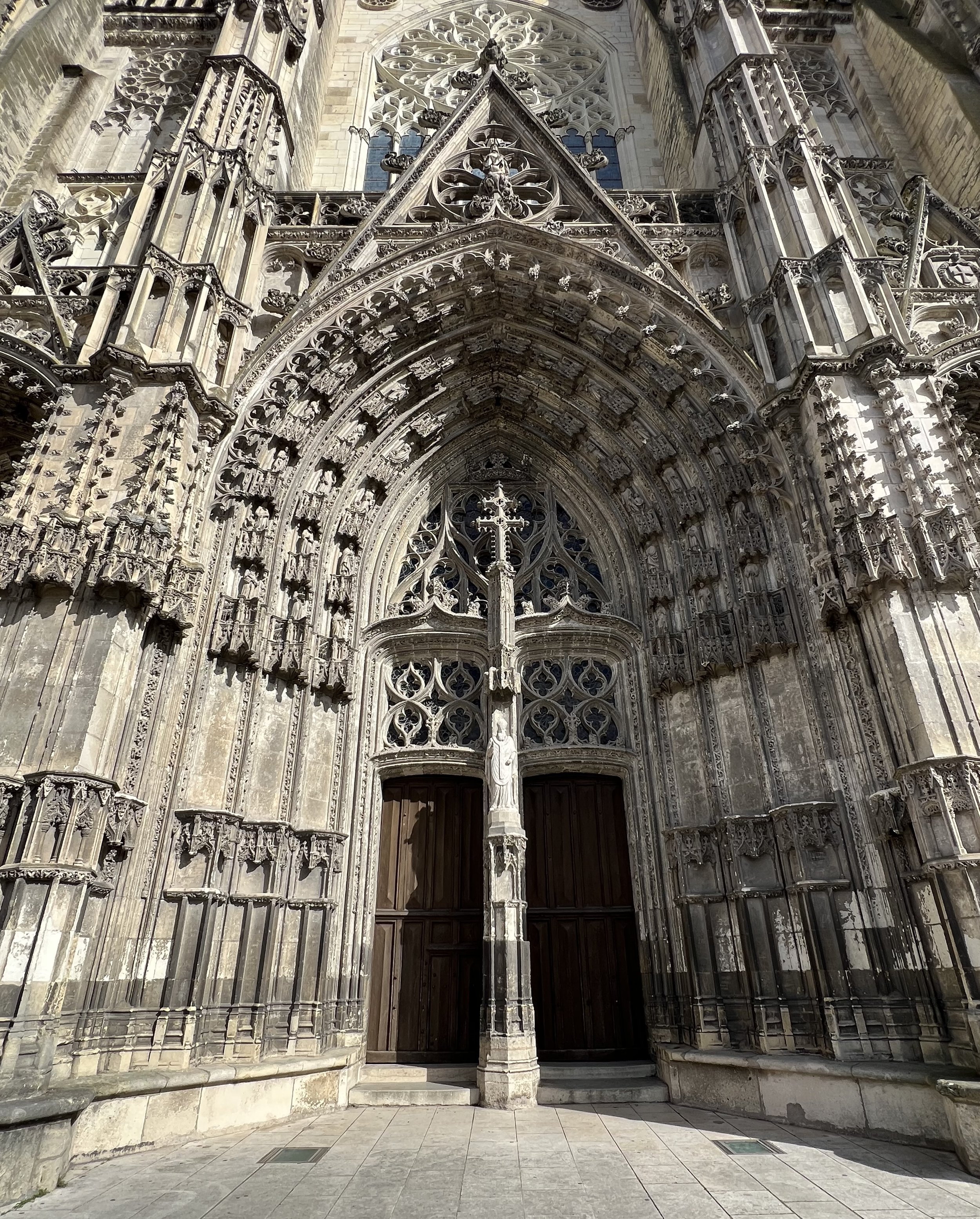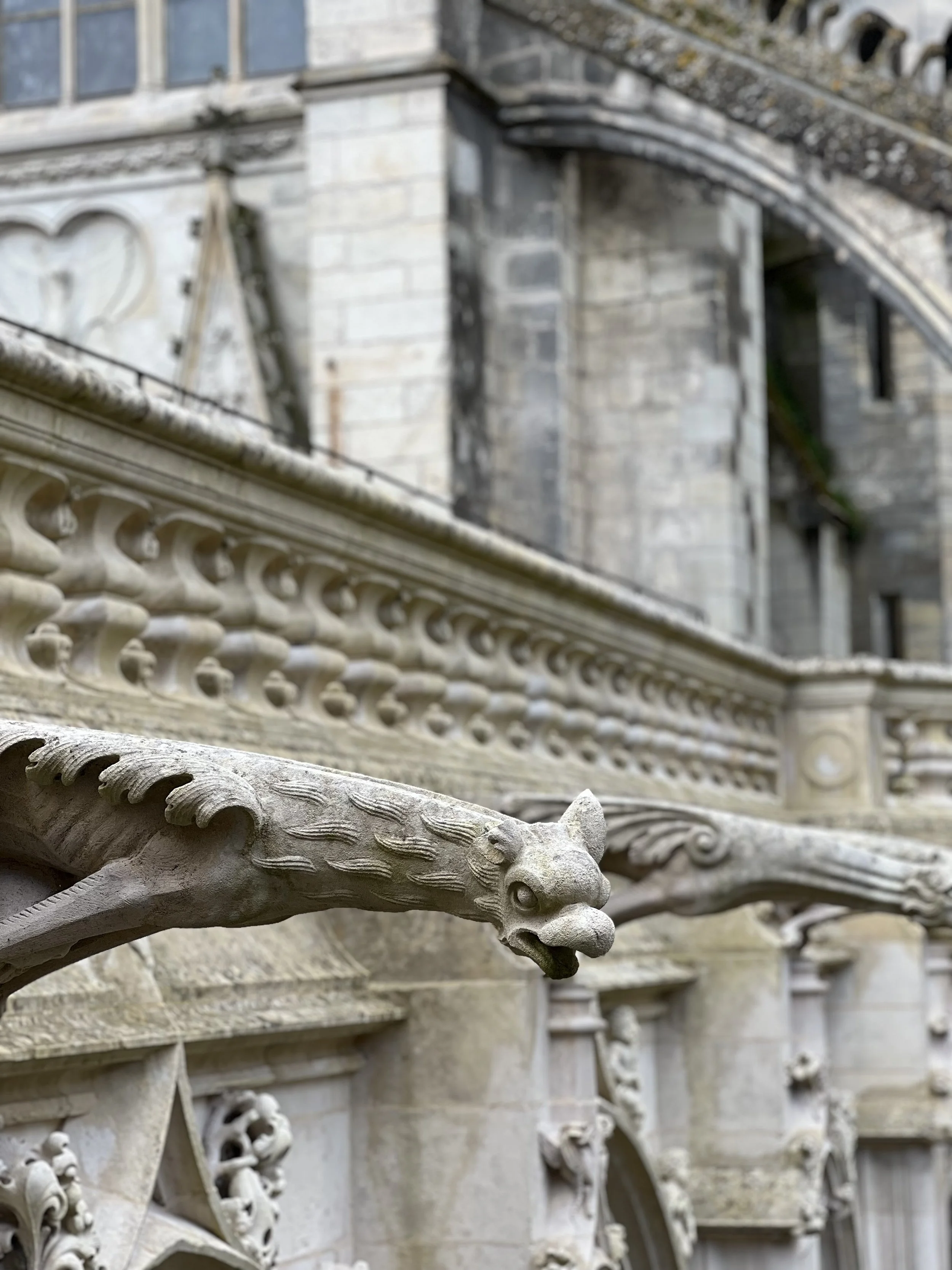 Quietly in awe, we explored Cathédrale Saint-Gatien de Tours. It is one of the largest French cathedrals I have seen outside of Paris. The towers are over 200 feet high with massive Flamboyant style buttresses and spires. It was built between 1170 and 1547. The intricate stained glass windows are from the 1300s. Breathtaking, holy, and sacred.