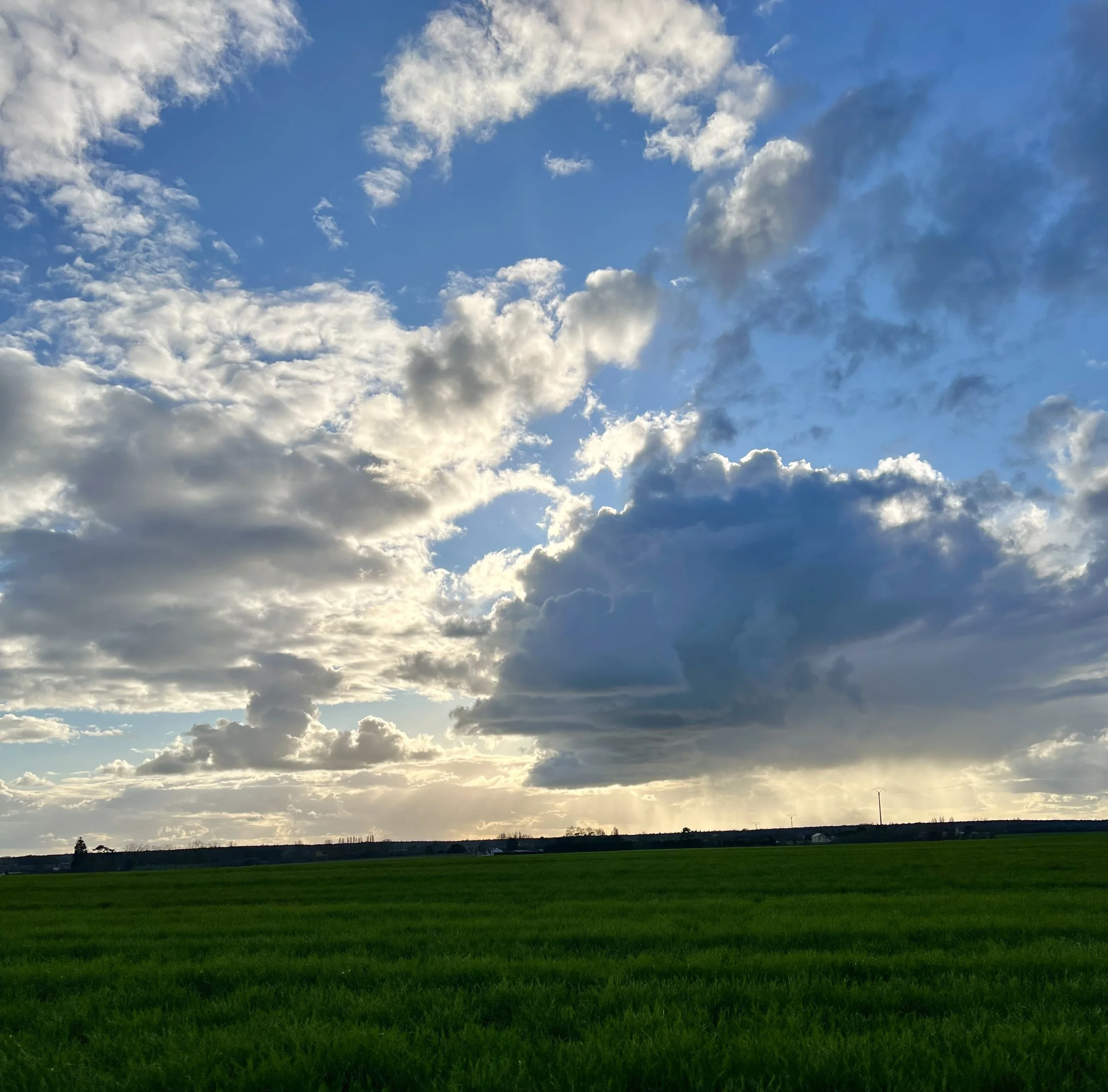 Dark clouds on the horizon with rain on the drive home